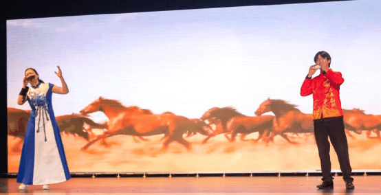 陶笛演奏家刘婧雅和她的学生李文声的二重奏《赛马》,马年气势昂扬,引来现场观众一片惊呼赞叹;华府著名京剧票友車欣的《打龙袍》,扮相漂亮,唱腔专业,让观众大饱耳福;男高音袁小方一曲《我是中国人》气势如虹,将家国情怀推向高点,全场掌声欢呼声阵阵。