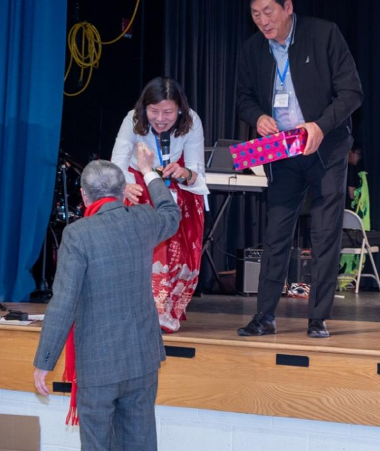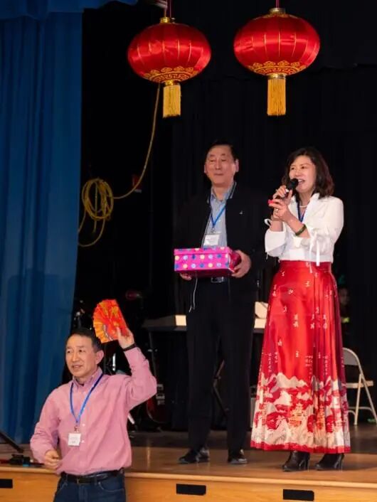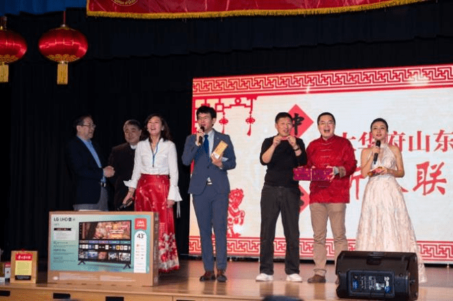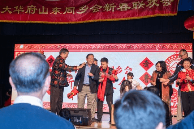 好客的山东春晚吸引来了马里兰州社区活跃人士,包括州长候选人,州法官,他们自己买票,来感受华人的年味儿,并且被现场的热烈气氛深深感染。另外,来自全国各省份的几十位华府社团的领军人物也来了,还有咱们山东老乡,中国驻美大使馆董传杰参赞,张璋领事,王一凡领事,亲临现场祝贺并讲话,增添了家人的温暖。当嘉宾们一起将象征幸福与希冀的“笑笑马”扔向台下观众的时候,那一张张喜悦的笑脸,和张开的双臂,接到怀中的是家乡的情谊,是心灵的归属。