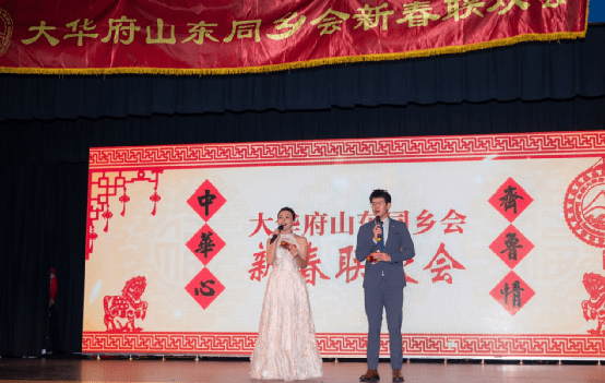 两位年轻主持人杨恺与孙嘉洵登场,让人眼前一亮。土生土长的山东小曼与小伙,既有年轻人的活力,也有家乡人的亲切。杨恺是活跃在华府舞台的知名歌星,她主持的台风稳健大气;嘉洵以“志河”的身份幽默抖包袱,节奏干净利落,把全场情绪自然带入“山东模式”。