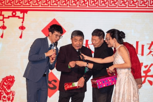 观众进门就送祝福关节健康的阿斯蒂行“软骨素”,小演员每人一个马上有福的小红马,每个孩子都有一个放着压岁钱的红包,之后多轮抽奖让现场笑声不断。十几个现金红包,专业的插花盆景,经典红酒,网红点心,热水壶、匹克球拍、Smart TV(“大财电”)、还有茅台……惊喜接连出现,最后大奖抽出之前,更是上演一轮争先恐后补买奖券的热潮,联合会徐江会长“出巨资”瞄准了茅台,却被“老外”抽走,全场瞬间感觉“可惜了”。。。不管花落谁家,大家都互相祝贺着,欢笑着,祝福着!这就是山东人的年!热闹的年!
